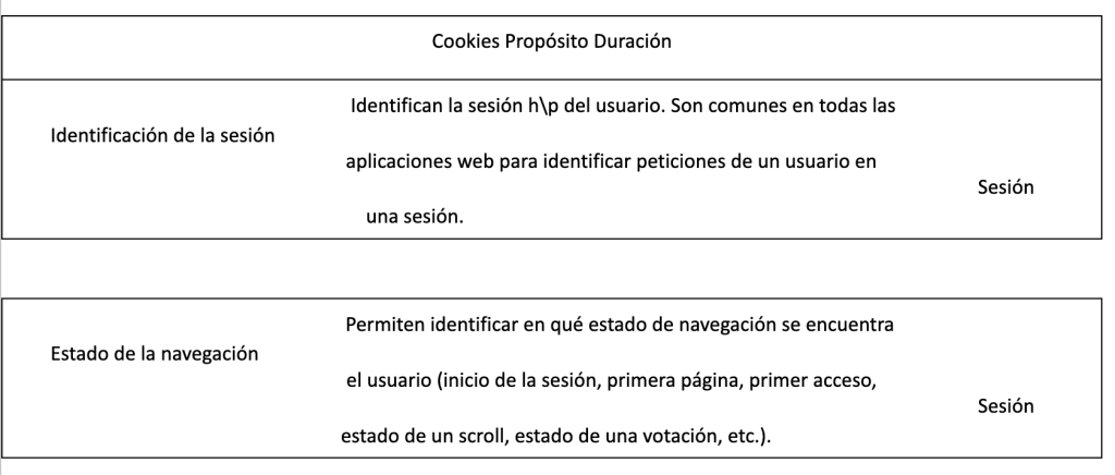 Sin embargo, este sitio web también tiene instaladas cookies que requieren el consentimiento de los usuarios. A continuación, siguiendo las directrices de la Agencia Española de Protección de Datos, procedemos a detallar el uso de cookies mediante su identificación y explicando su tipología y función, con el fin de informarle con la máxima exactitud posible.