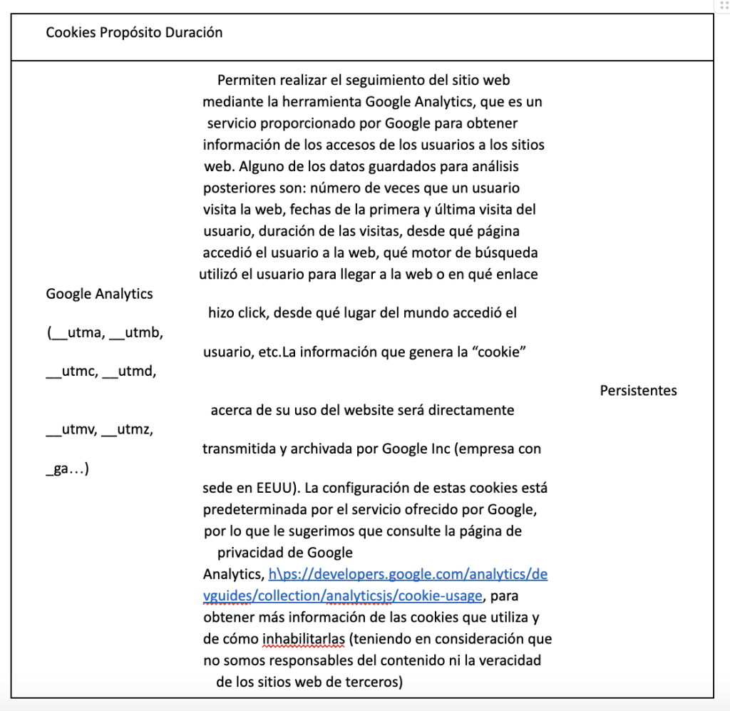 - Este sitio web utiliza las siguientes cookies de terceros: